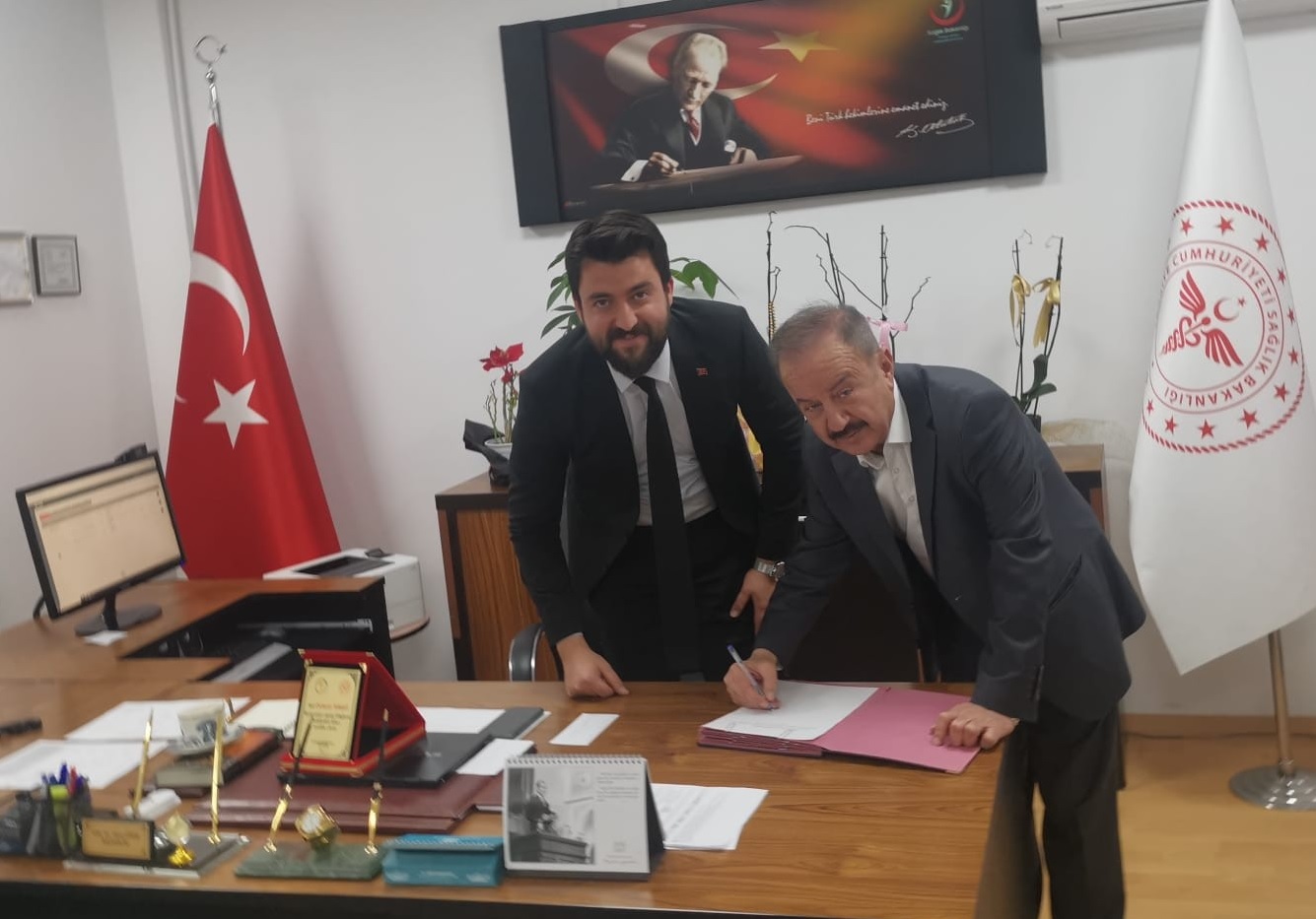 Çarşamba günü Haymana Devlet Hastanesi’ni ziyaret eden Turgut ile Hastane Başhekimi Veysi Siber arasında bağış protokolü imzalandı. Protokolün ardından Başhekim Siber tarafından Özdemir Turgut’a plaket takdim edildi.