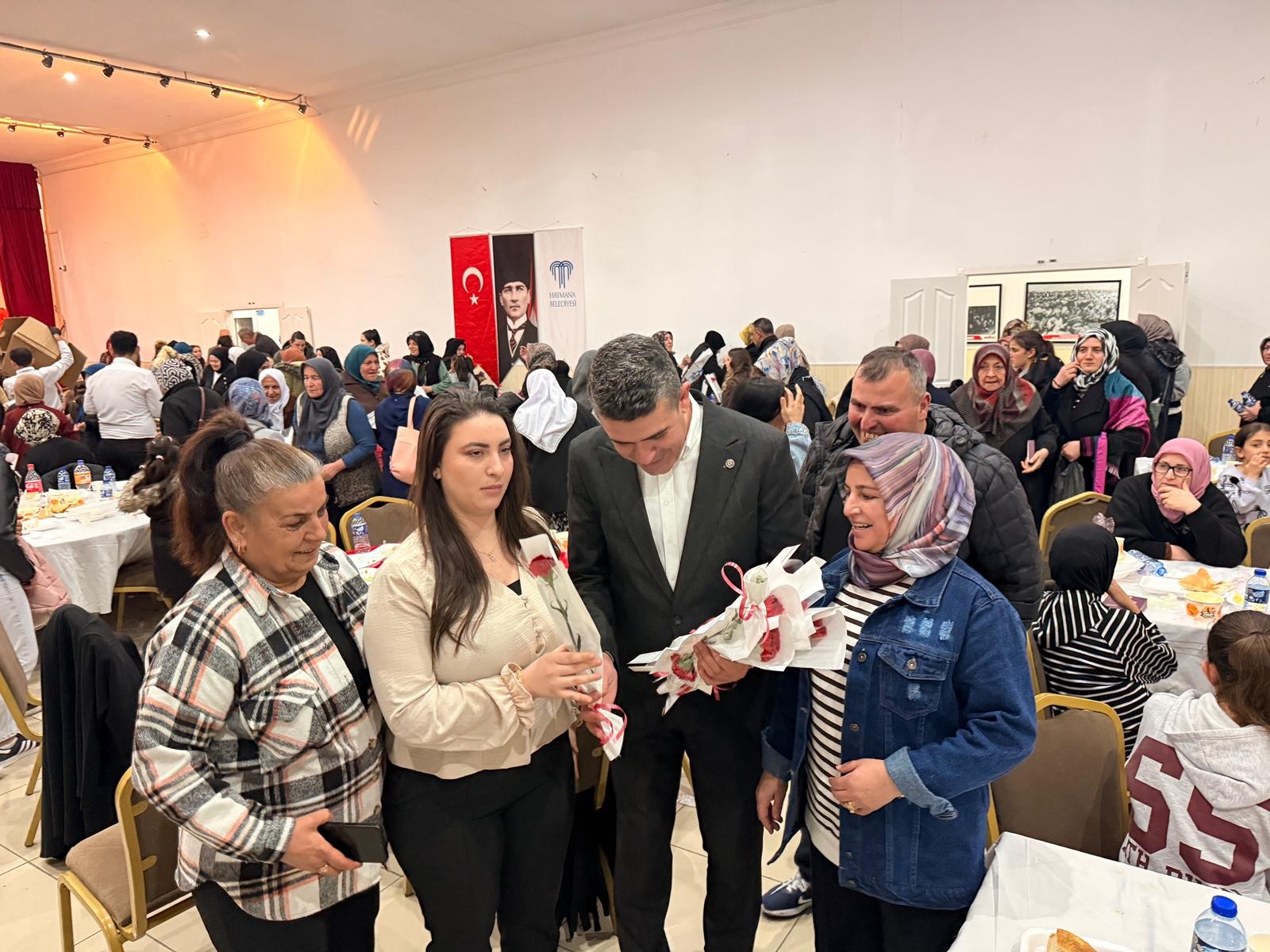 8 Mart Dünya Kadınlar Günü dolayısıyla Haymana Belediyesi, Kültür Merkezi’nde kadınlara özel bir iftar organizasyonu düzenledi. Yoğun katılımın olduğu programda Haymana Belediye Başkanı Levent Koç ve CHP Haymana İlçe Başkanı Kasım Koç da yer aldı.